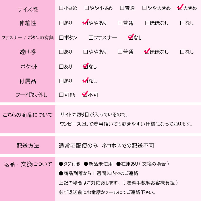 通常サイズで、ワンピースとして着てもOK!!