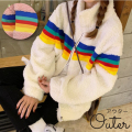 レディース アウター モコモコ ボア アウター レインボー 韓国 ファッション アウター 可愛い 大人 レディース 秋 冬 韓国 オルチャン 衣装