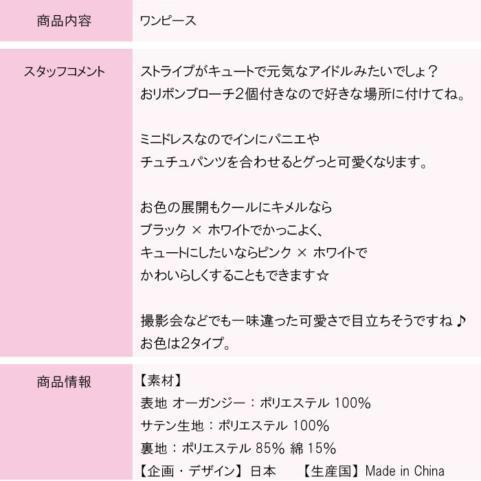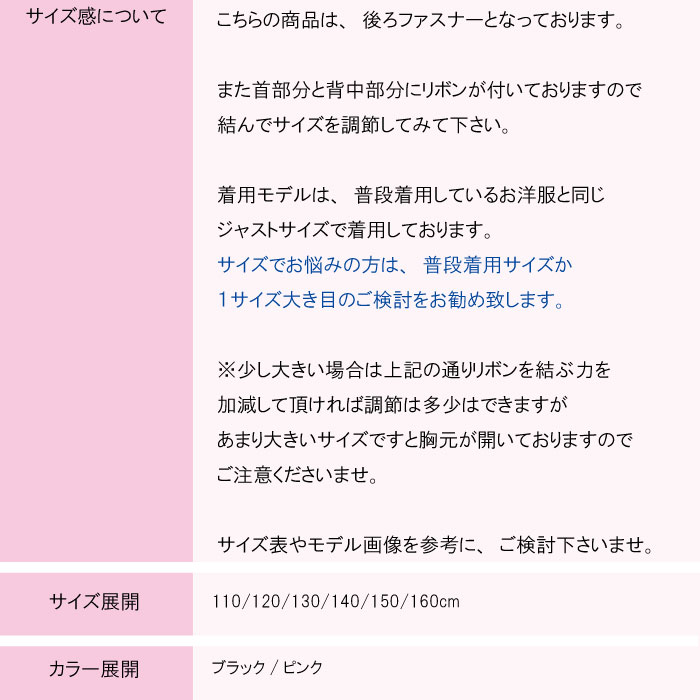 メロディ(リボンブローチ2個付き) 子供服 ブラック ピンク 全2色 100cm-160cm ネコポス不可商品
