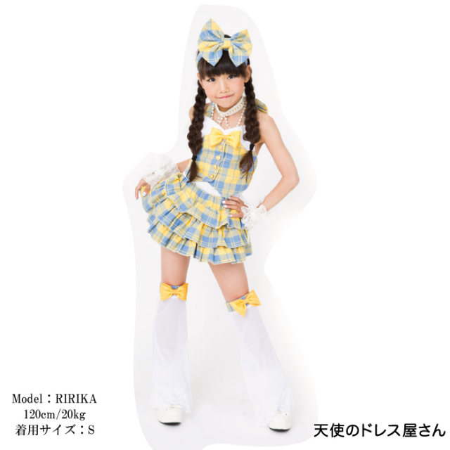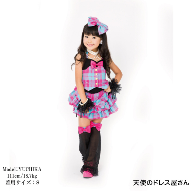 子供服 セットアップ ダンス エンジェルパフォーマー 4点SET 衣装 ダンス衣装 コスチューム ヘアアクセ トップス スカパン レッグカバー 全2色 チェック柄 S M L 在庫限り 送料無料 10着以上でまとめ割