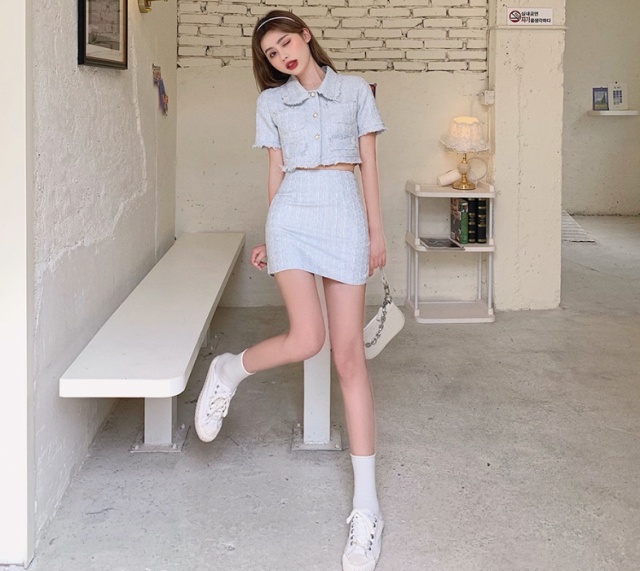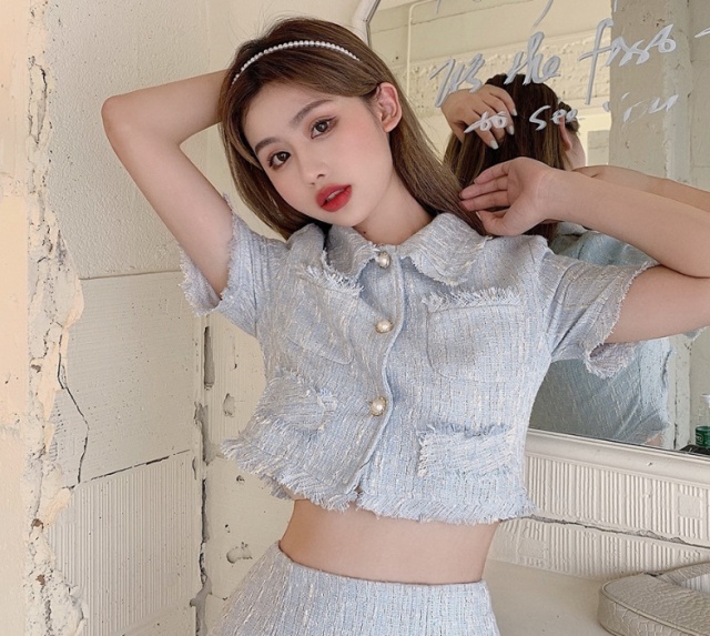 レディース ジャケット タイトスカート セットアップ 可愛い ツイード セットアップ 半袖 韓国 レディース 春 夏 韓国 アイドル 衣装 ネコポス不可 返品交換不可