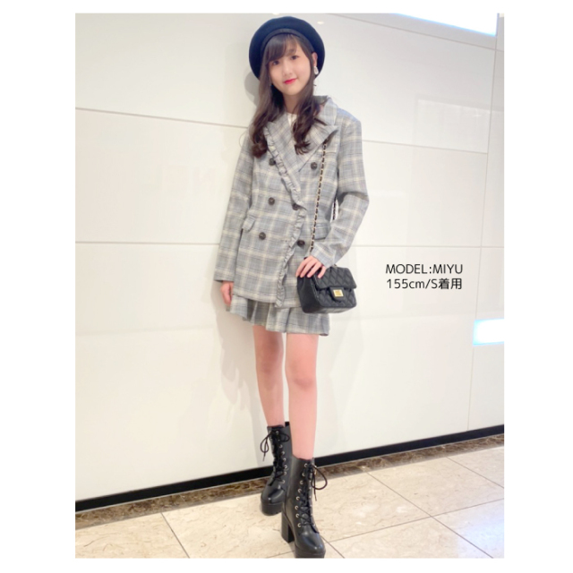 レディース 秋 冬 ジャケット プリーツスカート セットアップ インパン付き 可愛い チェック グレー セットアップ 半袖 韓国 レディース 韓国 アイドル 衣装 ネコポス不可 返品交換不可 エンジェルローブヴィセ ヴィセ
